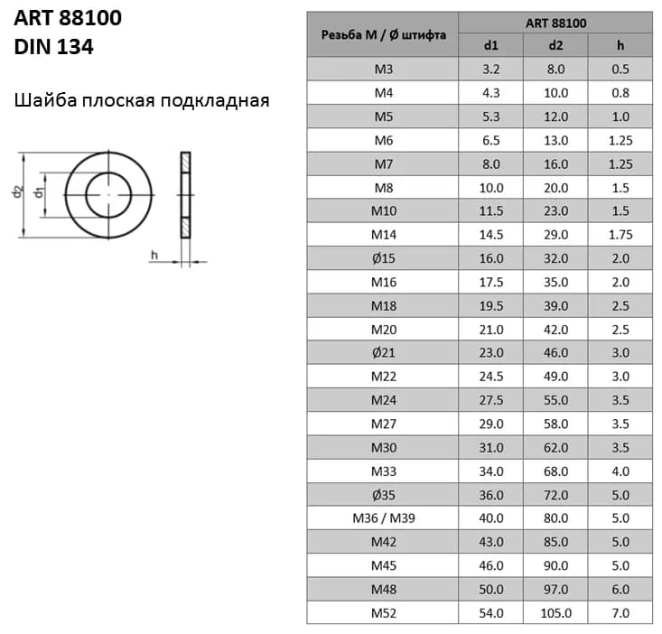 Усиленная плоская шайба DIN 134 отличается увеличенной толщиной материала, что позволяет использовать её в соединениях с повышенными монтажными нагрузками.