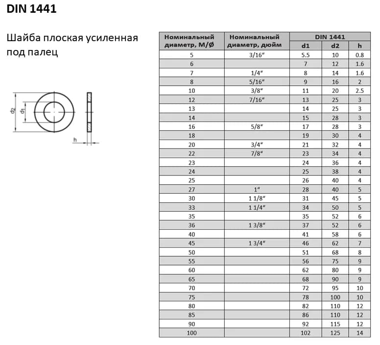 Плоская шайба DIN 1441 с классом точности C используется в подвижных шарнирных осях, обеспечивая точность сопряжения деталей.