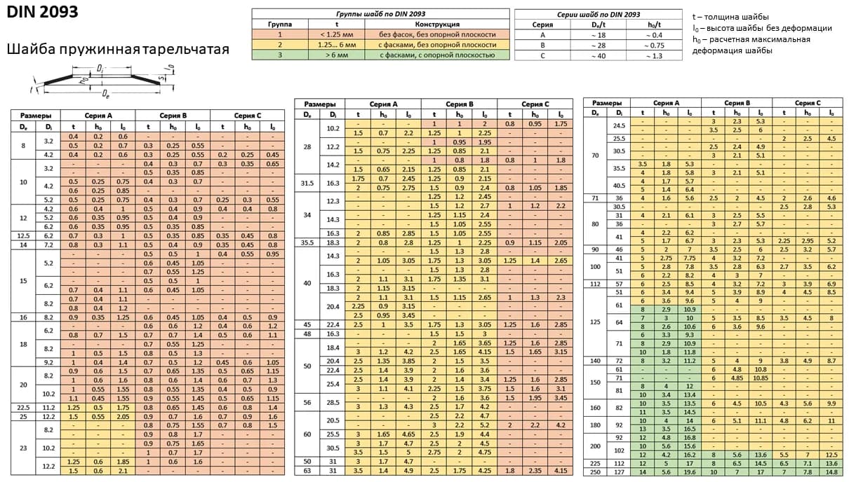 Тарельчатая пружина DIN 2093 представляет собой коническую упругую шайбу, обеспечивающую высокие силовые характеристики при малом рабочем ходе сжатия.
