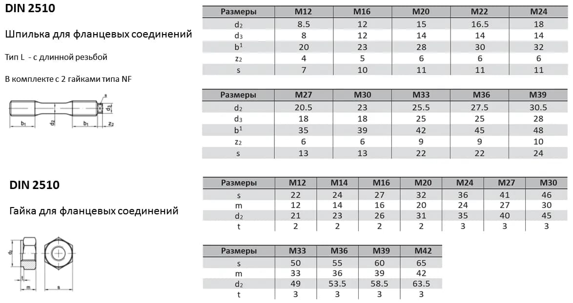 DIN 2510 Шпилька для фланцевых соединений с гайками