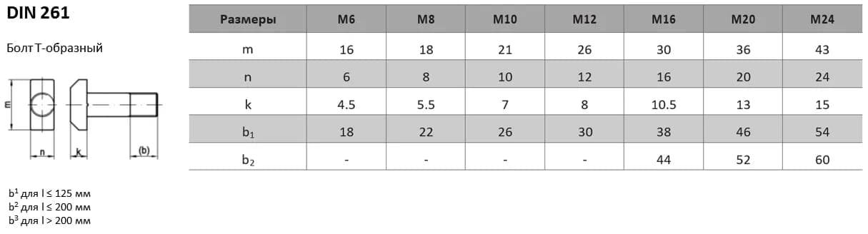 Болт DIN 261 с Т-образной головкой предназначен для крепления деталей в станочных пазах.
