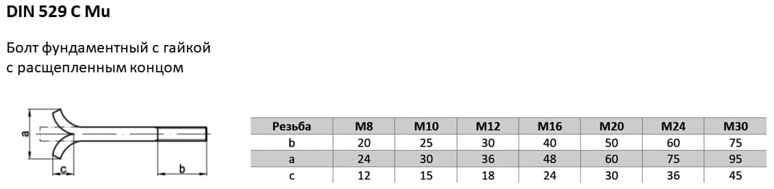 Анкерный болт DIN 529 используется для заделки в бетонные основания и фундаменты, вариант исполнения 529 C.