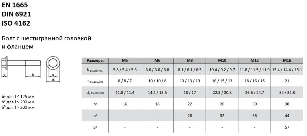 Болт DIN 6921 конструктивно оснащен шестигранной головкой с интегрированным пресс-фланцем, заменяющим шайбу. Аналоги стандарта: EN 1665. При замене крепежа между стандартами рекомендуется сверять допуски на размер головки под ключ, так как они могут незначительно отличаться, сохраняя полную совместимость по резьбе и прочностным характеристикам.