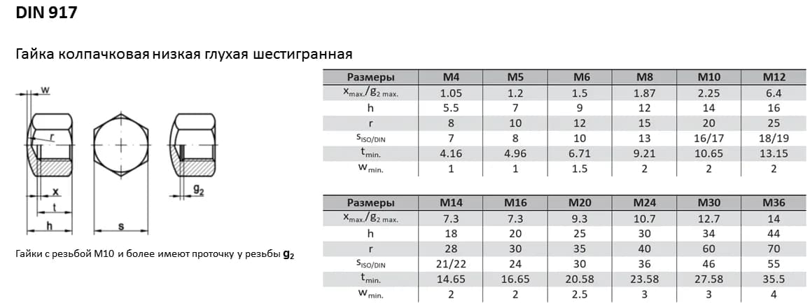 Колпачковая низкая гайка DIN 917 служит для защиты резьбы и придания эстетичного вида узлам, где критически важна минимальная высота выступающих частей.