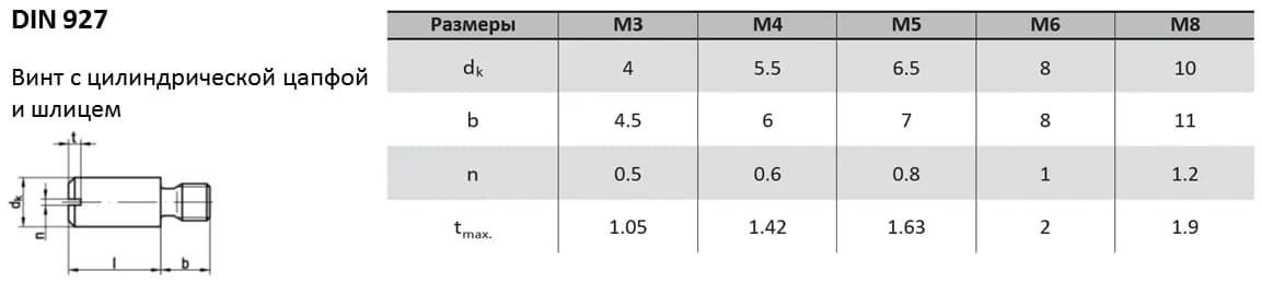 Винт DIN 927 с прямой прорезью и тонким стержнем применяется в качестве прецизионной оси в механизмах.