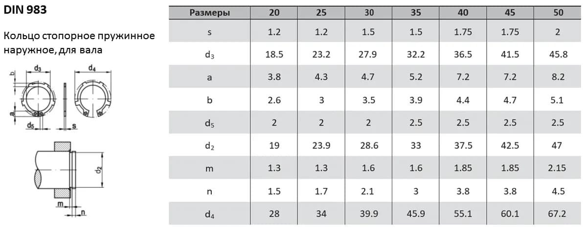 Кольцо d50х2, DIN 983 стопорное пружинное наружное для вала