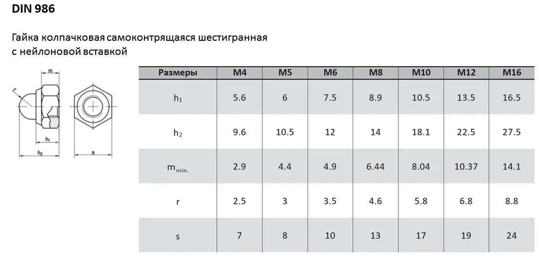 Самоконтрящаяся колпачковая гайка DIN 986 сочетает защитные свойства колпачка и стопорные свойства нейлоновой вставки.