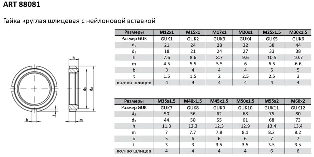 Гайка М55х2, ART 88081 самоконтрящаяся шлицевая GUK с нейлоновой вставкой, оцинкованная