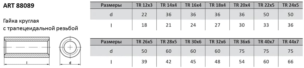 Гайка TR 40х7хD75хL60, ART 88089 круглая трапецеидальная