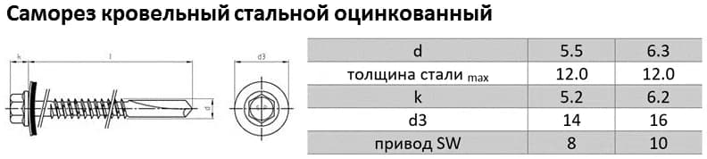 Саморез d5.5х76, кровельный по стали до 12 мм шайба EPDM SW8, оцинкованный