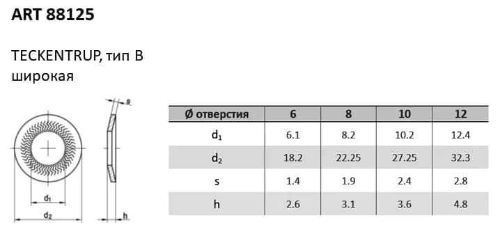 Шайба М10, ART 88125 стопорная с насечкой широкая TECKENTRUP b, цинковые хлопья