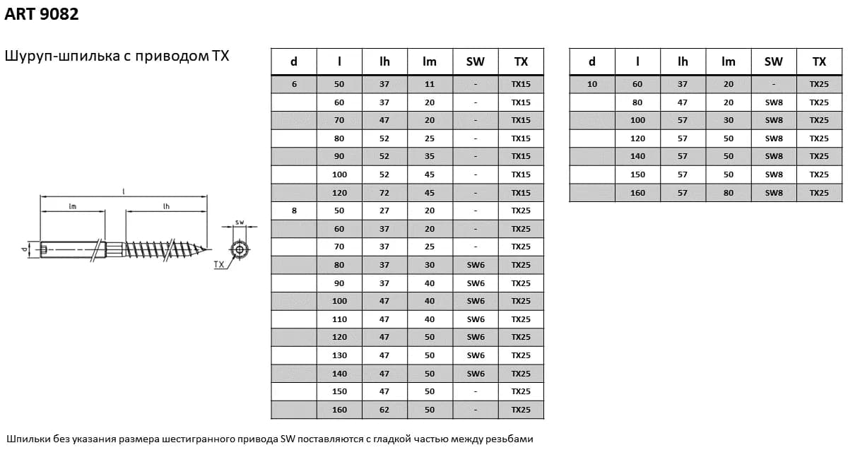 Установку шуруп-шпильки в твердые основания (дерево, бетон с дюбелем) следует производить с предварительным сверлением отверстия (используйте шлиц TORX). ВАЖНО: При монтаже соединений из нержавеющей стали обязательно применяйте антифрикционную смазку. Это предотвратит 'закусывание' (холодную сварку) резьбы, которое часто случается при трении нержавеющих сплавов.