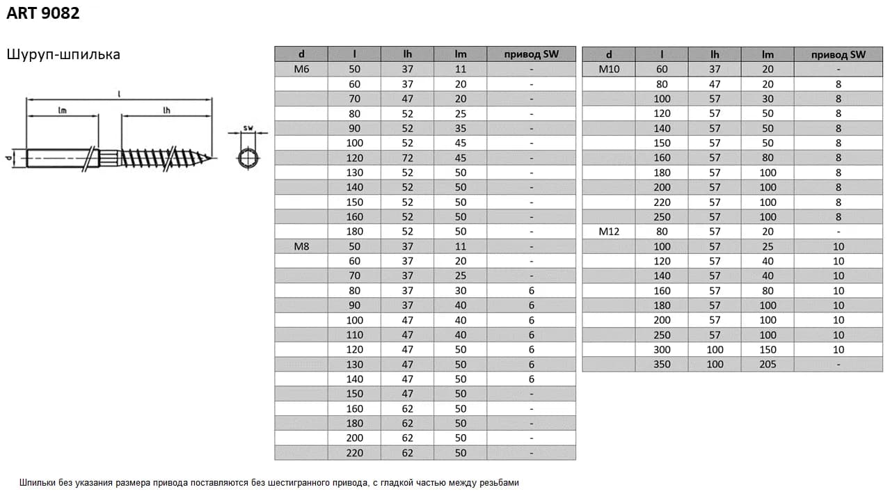 Установку шуруп-шпильки в твердые основания (дерево, бетон с дюбелем) следует производить с предварительным сверлением отверстия. При монтаже соединений из нержавеющей стали обязательно применяйте антифрикционную смазку. Это предотвратит 'закусывание' (холодную сварку) резьбы, которое часто случается при трении нержавеющих сплавов.